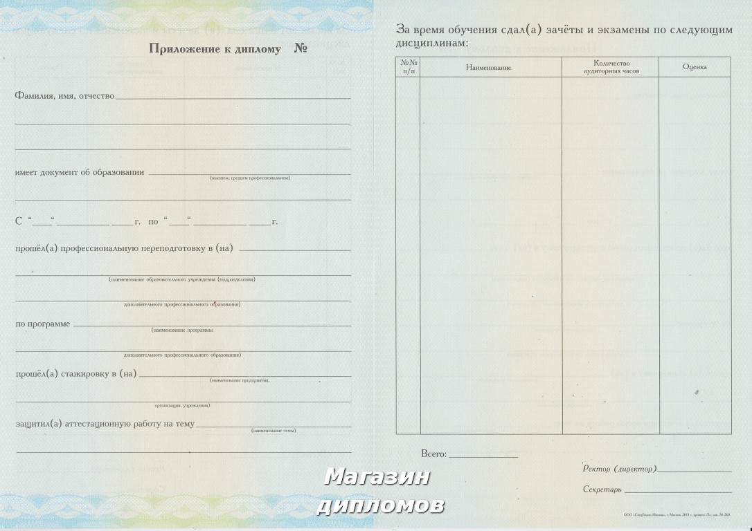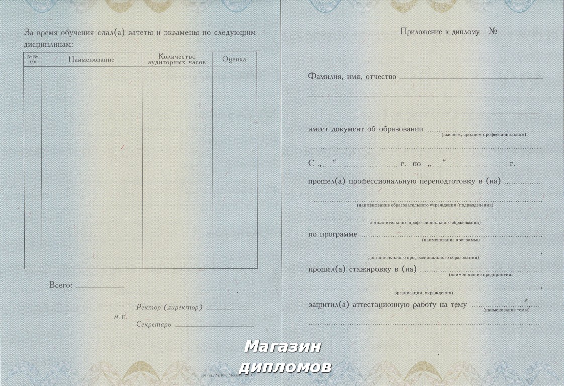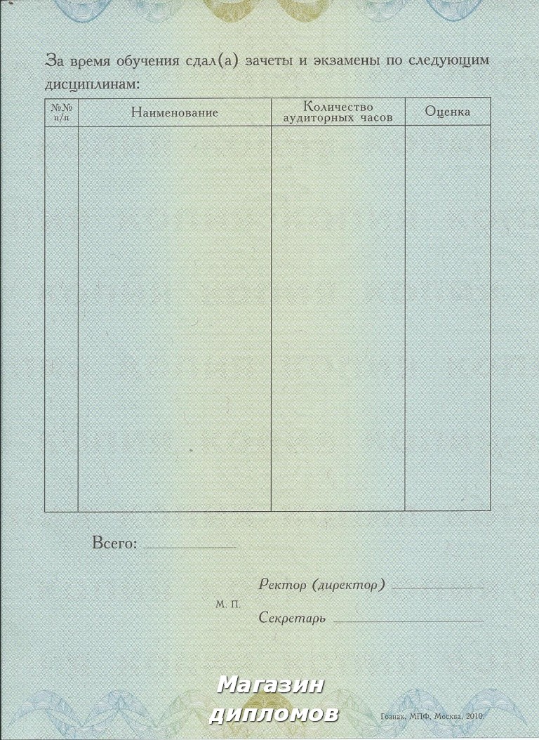 Диплом о профессиональной переподготовке (Гознак, МПФ, Москва 2010 год.), выдавался до 2010 года.